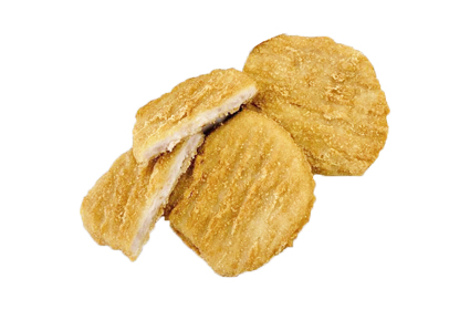 Состав: филе цыплят-бройлеров, вода, пшеничная мука, соль, разрыхлители: Е450(i), E500(ii); декстроза, подсолнечное масло, пшеничный глютен, манная крупа, пшеничная клейковина, кожа цыплят-бройлеров, картофельный крахмал.